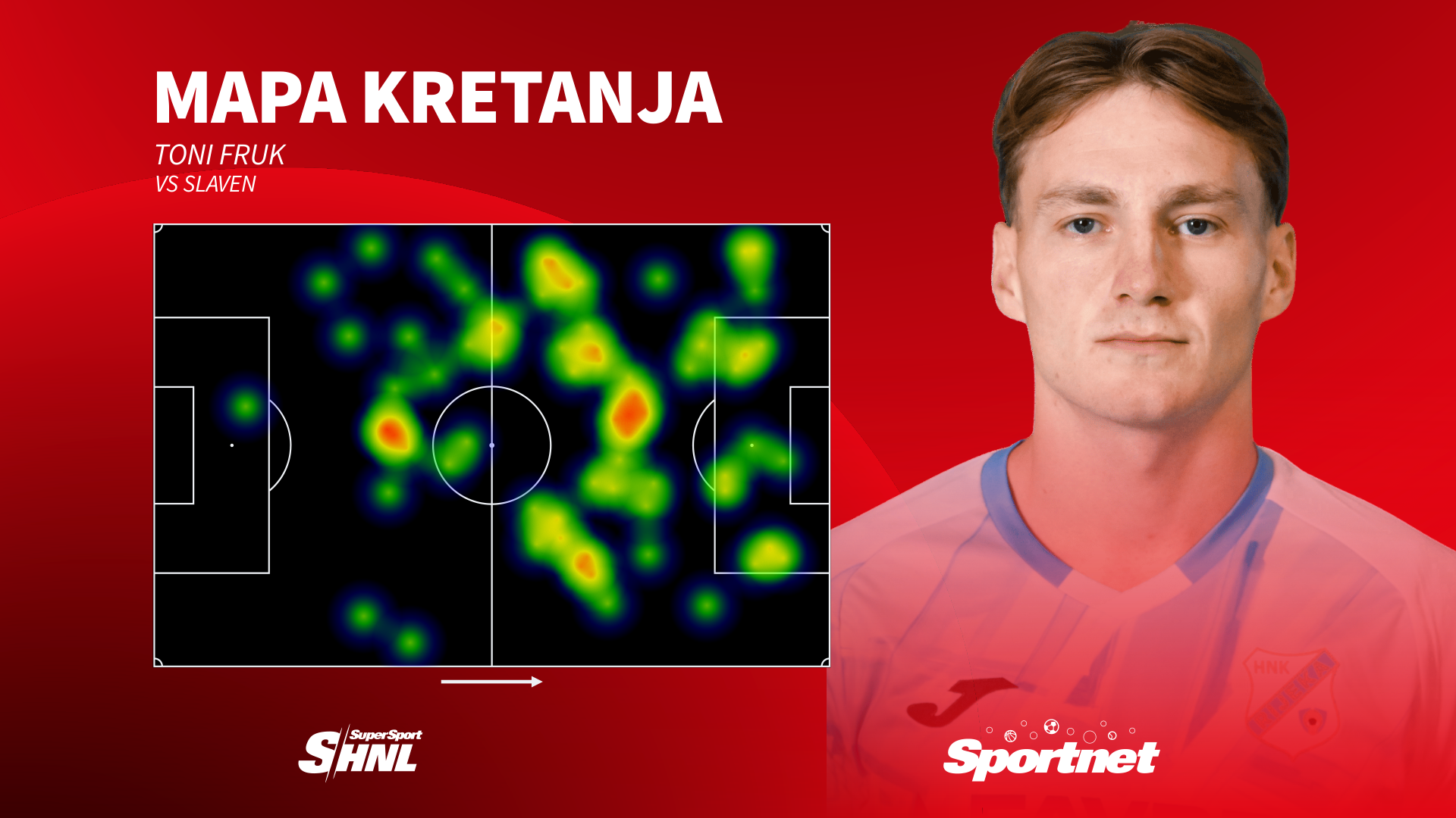 Uz to, Fruk je imao i dva ključna dodavanja te četiri od osam uspješnih driblinga. Kao što se može vidjeti i na mapi kretanja, Fruk je bio jako raspoložen i rastrčan na svim stranama terena. To vrijedi još i više kada uzmemo u obzir da je u Koprivnicu došao praktički s jednim odrađenim momčadskim treningom nakon reprezentativne stanke.