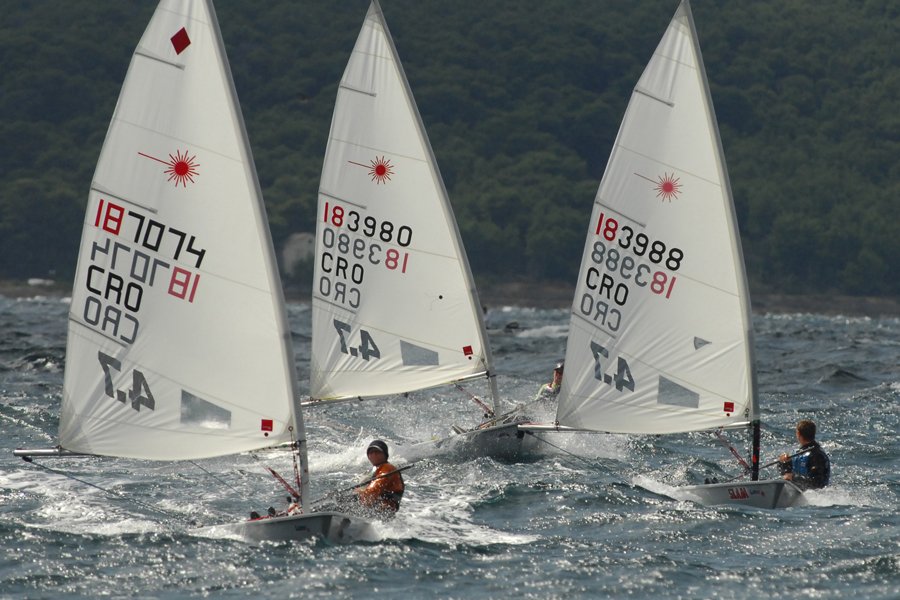 Laseraši su po tako laganom vjetru uspjeli odjedriti samo jedan plov. Među 56 Laser Radiala poveo je Švicarac Phillipe Erni. Najbolji hrvatski kormilar je Luka Jerčić (Split) na trećem mjestu. Najbolja kormilarka u jedinom danas odjedrenom plovu bila je Tajana Ganić (Vega, Pula), deveta u cilju, jedno mjesto ispred Tine Mihelić (Galeb, Kostrena). U konkurenciji 52 Lasera 4.7 prvo je mjesto zauzela Mađarica Fanni Pech, od Hrvata najbolja je Antea Kordić (Split) na trećem mjestu. Flota Lasera broji 21og kormilara. Pobjedu u prvom plovu uzeo je Milan Vujasinović (Labud, Split), ispred Filipa Matike (Vega) i Arona Lolića (Labud).